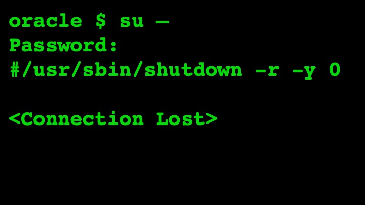 So when he called through to me from the server room to say, “Hey could you reboot the lab box?” I wondered over to his desktop and typed the magic reboot command on the first root window I found. Hey, one terminal session looks like another, right?