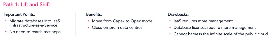 So with that in mind, let’s have a look at the three main approaches to moving complex database applications into the public cloud.