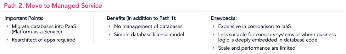 Managed Databases are a great solution for the hundreds of boring databases you may have on-prem. Imagine never having to patch stuff again! But for anything even remotely unusual, or anything that regularly causes you pain, the chances are slim that PaaS will be the right fit.