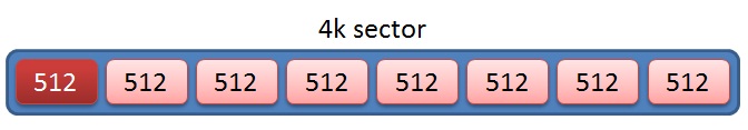 Advanced Format offers a similar dual addressing system: physical sectors, which are always 4k in size, have a physical block address. In the first method, which is called native mode (also known as “4k“), I/O operations correspond directly to the 4k physical sectors*, meaning no I/O can ever be less than 4k in size. There is more to say about this, but I’ll come back to it later. However, the most important thing to know about native mode is that applications, operating systems and so on need to understand how it works. In Linux, for example, I/O calls to 4k are subtly different to “normal” 512 byte I/O calls. So what happens if your application or OS doesn’t support native mode?