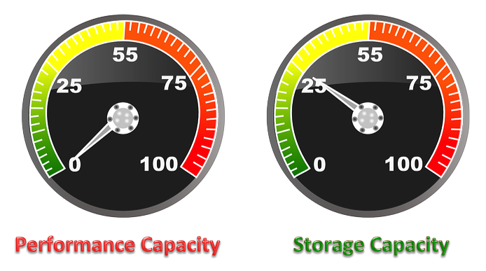 When people talk about disk capacity then tend to be thinking of the storage capacity, i.e. the number of bytes of data that can be stored. However, while every storage device must have a storage capacity, it will also have a performance capacity – a limit to the amount of performance it can deliver, measured in I/Os per second and/or some derivative of bytes per second. And the thing about capacities is that bad things tend to happen when you try to exceed them.
