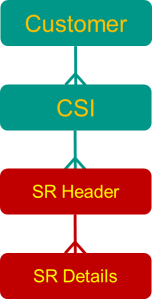 The SR itself is also a parent-child relationship between the SR Header and the SR Details (or “activities”). The parent is SR Header, which has attributes such as: